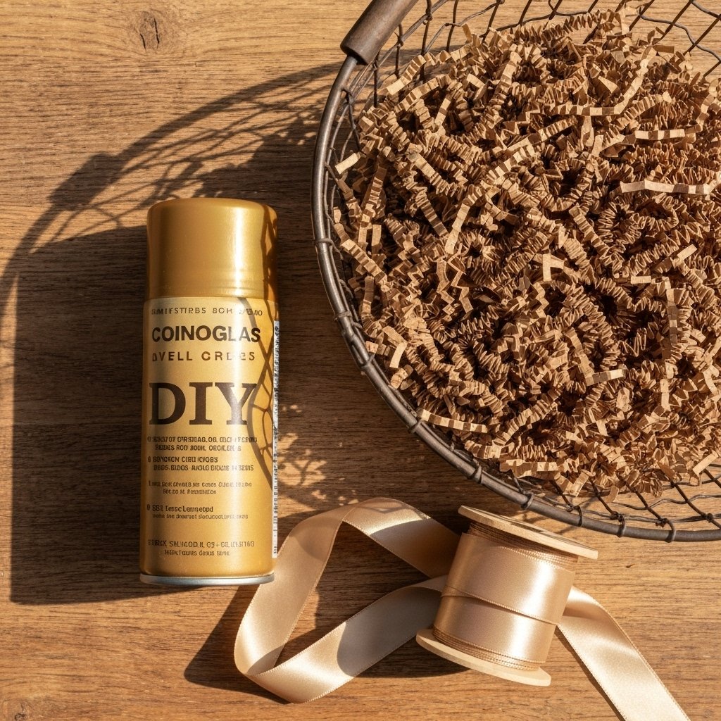 Nothing gives away a budget basket faster than that shiny, staticky plastic Easter grass. Your upgrade is shredded paper filler, also known as crinkle paper. You can find this at the dollar store in neutral colors like kraft brown, white, or black. It provides better support for your items and looks infinitely more upscale. Pro tip: if you can’t find it, buy a few paper gift bags in a solid color and run them through a paper shredder.