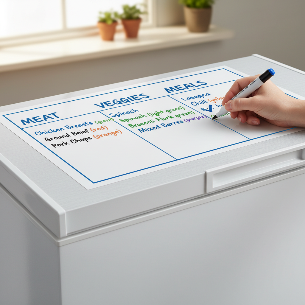• The Analog Method: A simple magnetic whiteboard or a laminated sheet of paper stuck to the freezer lid. Use a dry-erase marker to list items and quantities. Simple, cheap, and effective.