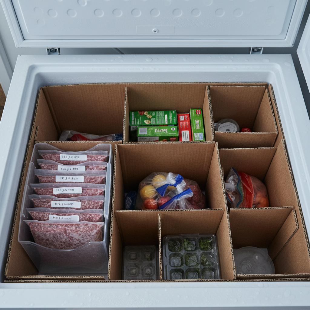 • Cardboard Boxes: The ultimate free resource. Find sturdy cardboard boxes from shipments or grocery stores. Cut them down to fit the height and width of your freezer to create custom compartments. They work surprisingly well in the dry, cold air.