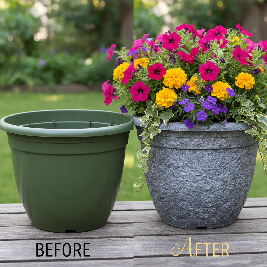 Plain plastic planters from the dollar store are your blank canvas. They might look cheap on the shelf, but with the right moves, they can mimic the look of aged terracotta, concrete, or even chic metal. This is the number one way to add instant sophistication to your porch.