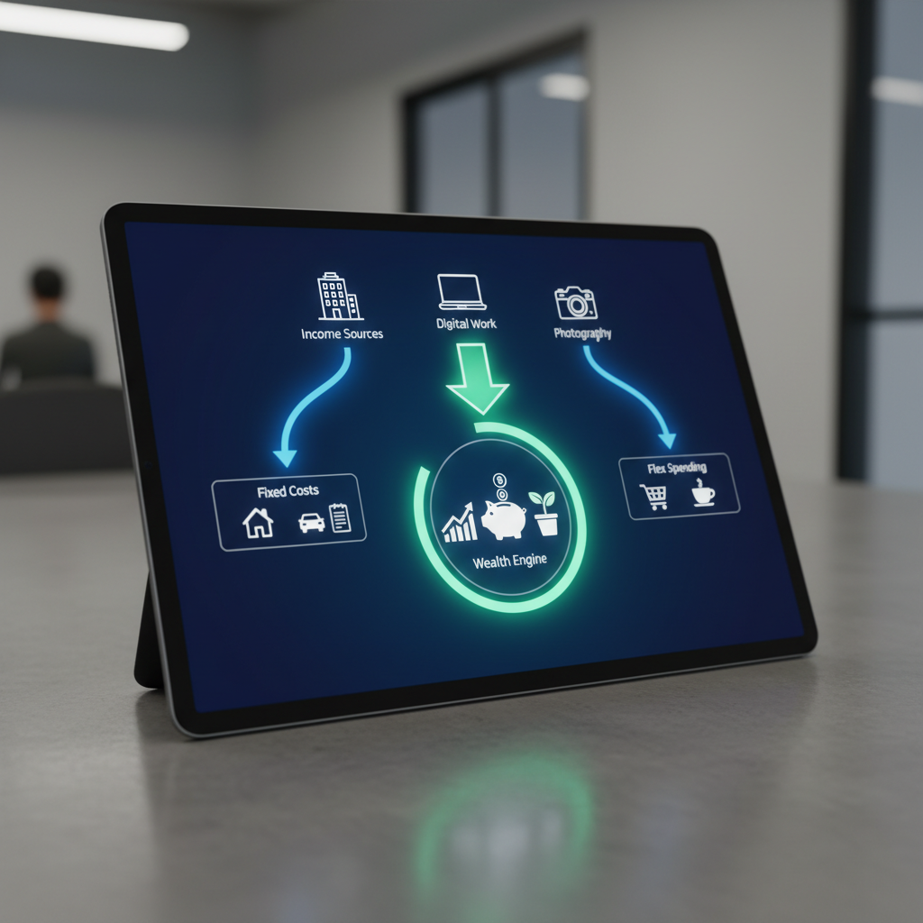 • The Wealth Engine: This is the most important channel and the one traditional budgets ignore. This is money actively being directed to build your future: high-yield savings, investments, extra debt payments on high-interest loans, and reinvestment into your side hustle.