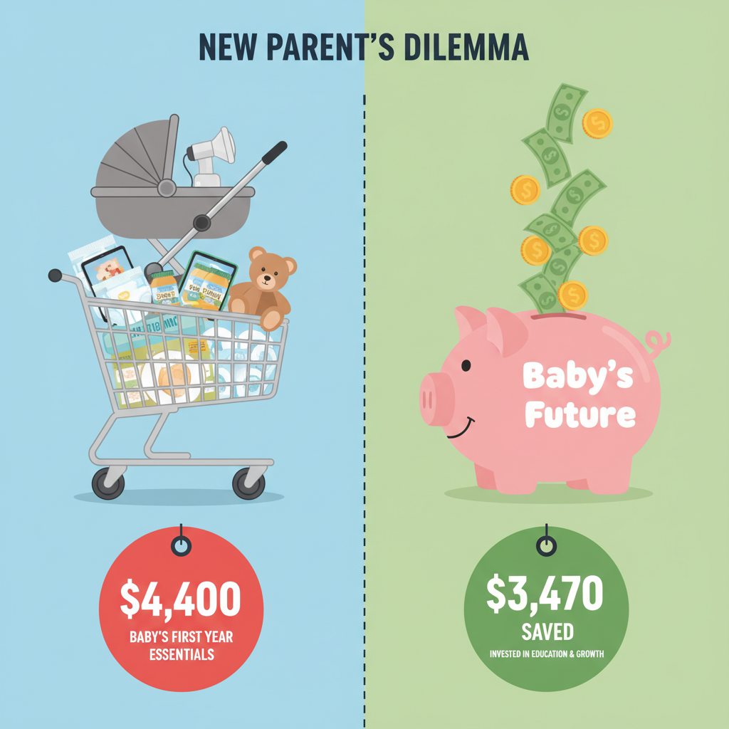 | Gear & Gadgets (High-End Stroller, Smart Bassinet, Swing, Bouncer) | $2,000+ | $350 (Used mid-range stroller, basic bouncer) | $1,650+ |