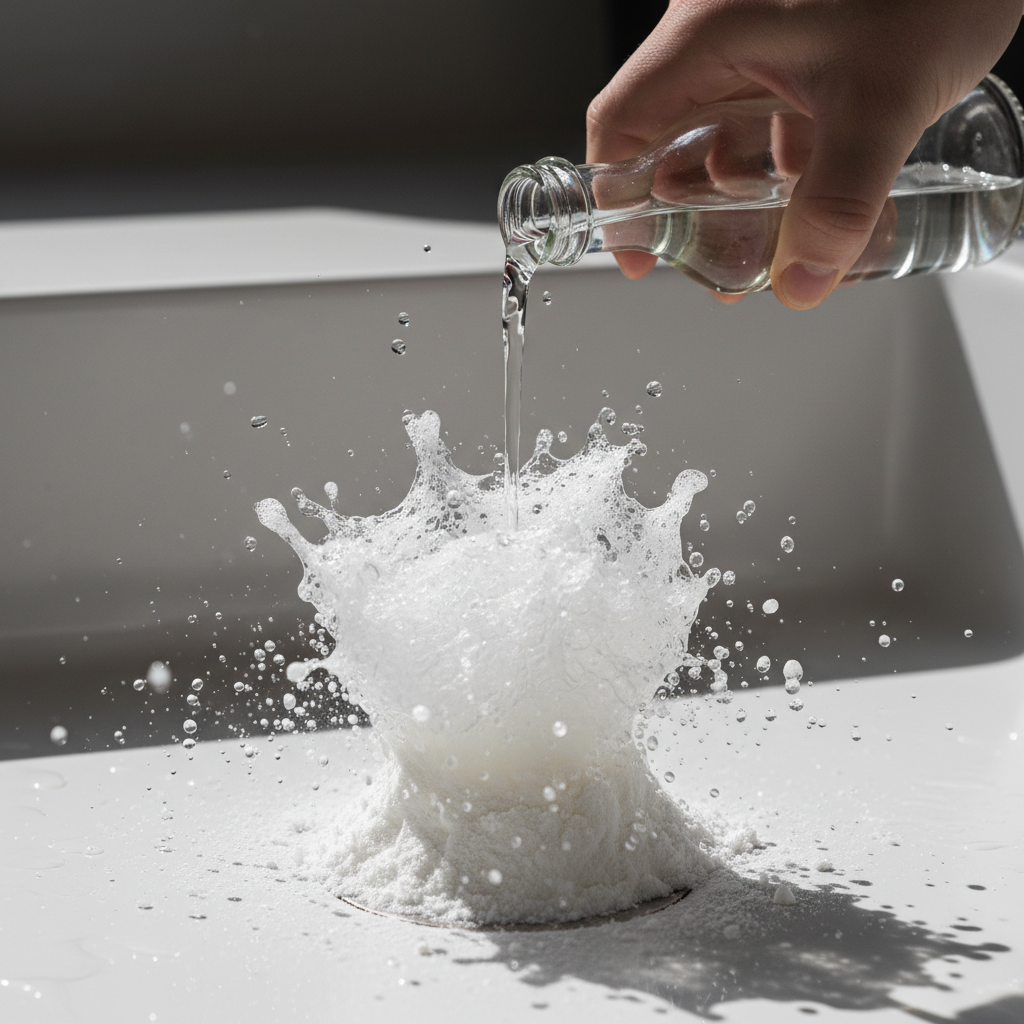 - White Vinegar: The other half of our power couple. Vinegar is a mild acetic acid. When this acid meets the baking soda base, you get a powerful chemical reaction. Think of your 3rd-grade volcano project, but weaponized against drain grime.