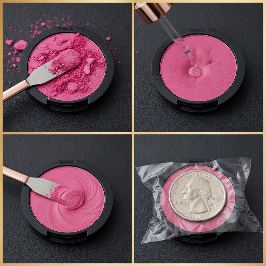 • A Flat, Firm Pressing Tool: Find a coin that fits neatly inside your compact—a quarter or a nickel usually works perfectly. The flat bottom of a small spice jar or a vitamin bottle cap can also work wonders. The goal is even, firm pressure.