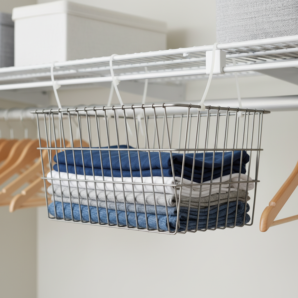 Hack #9: Zip-Tied Baskets for Under-Shelf Space
