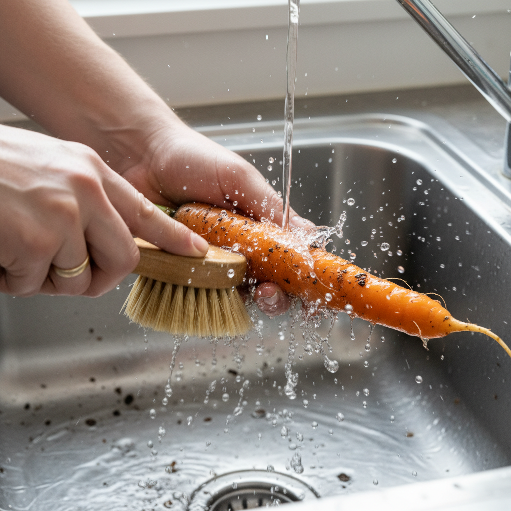 • Invest in a Brush: For anything with a tough skin—potatoes, carrots, melons, cucumbers—a dedicated vegetable brush is your best friend. After soaking, give them a good scrub under running water to physically dislodge any stubborn dirt or wax. It costs a couple of bucks and will last for years.