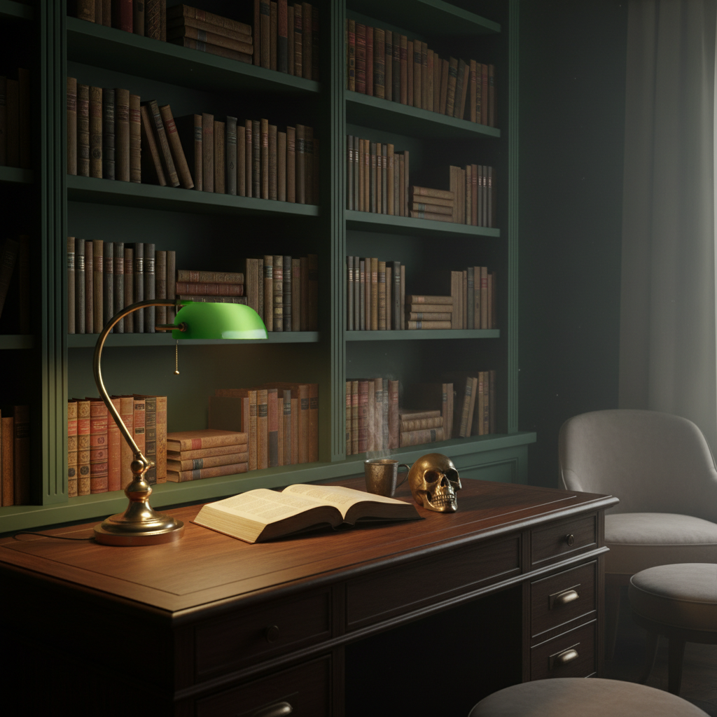 This look is for the reader, the thinker, the strategist. It’s inspired by classic university libraries and has a moody, intellectual vibe. Think dark woods, leather-bound books (even if you just get them for the look), brass accents, and a color palette of deep greens, burgundies, and blacks.