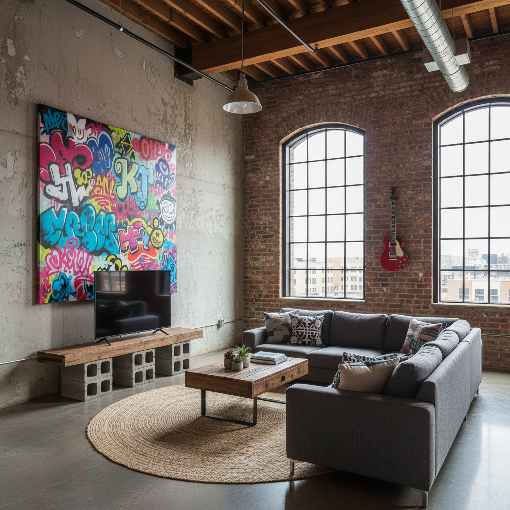 This look is for the creative mind. It’s a bit messy, but in an intentional way. It’s about showcasing your passions and projects. Think graffiti art, repurposed objects, and a mix of vintage and modern pieces. It’s a space that feels lived-in and inspiring.