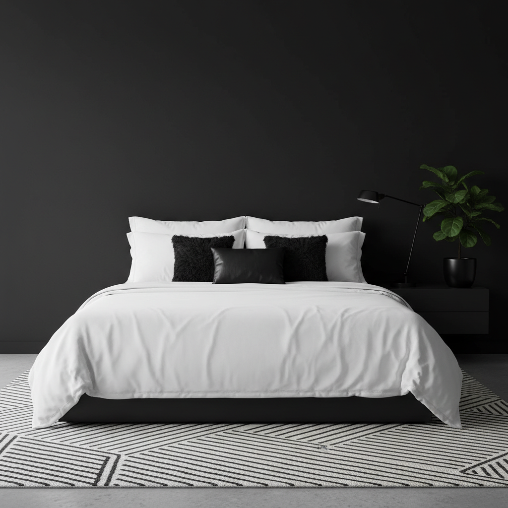 • Use Graphic Patterns: Incorporate bold, graphic patterns through pillows, rugs, or art. Black and white stripes, geometric shapes, or abstract prints add visual interest without breaking the color scheme.