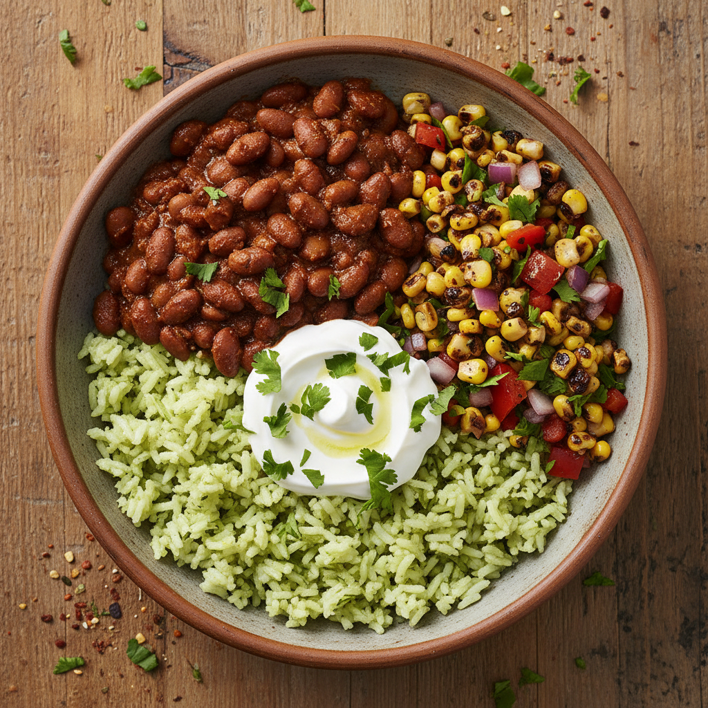 - Assemble your power bowl. Start with a generous scoop of the cilantro-lime rice. Top it with the smoky chipotle beans.