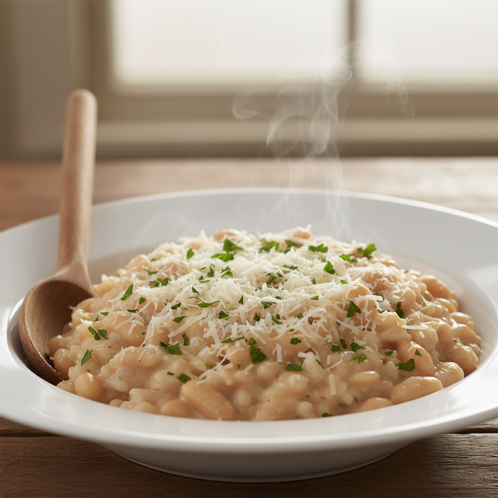 Feeling fancy? This recipe fakes the creaminess and luxury of a high-end risotto without the constant stirring and expensive Arborio rice (though you can use it if you have it!). We use standard long-grain rice and a clever trick with the beans to create a rich, savory dish that tastes like it came from a cozy Italian trattoria.