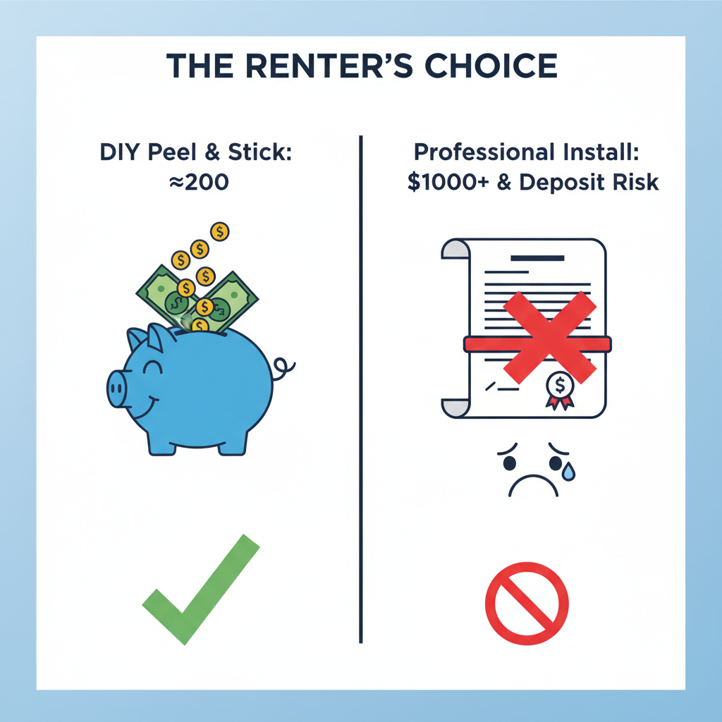 The table makes it crystal clear. For less than $300 and a weekend of your time, you can achieve a result that would cost over three times as much to have done professionally. And the professional option isn’t even truly an option for most renters! The real comparison is between the small investment in peel-and-stick versus the daily emotional cost of living in a space you don’t enjoy. That makes this project a no-brainer.