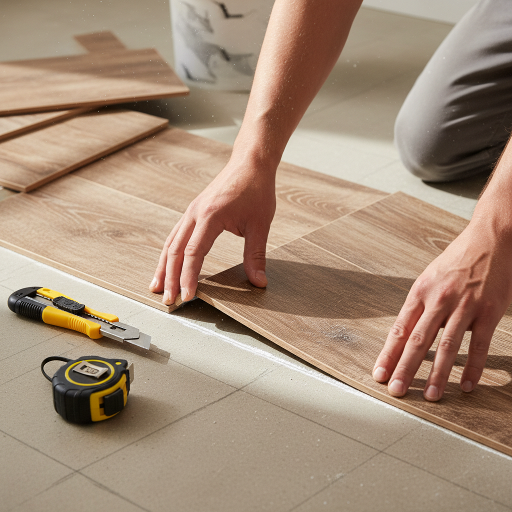 - Step 6: Stagger Your Seams (for Planks). If you’re using wood-look planks, you don’t want the seams to line up like a grid. It looks unnatural. For a realistic wood floor look, stagger the seams. A common method is to start a new row with the piece you cut off from the end of the previous row (as long as it’s not too small). This creates a random, natural pattern and also reduces waste.
