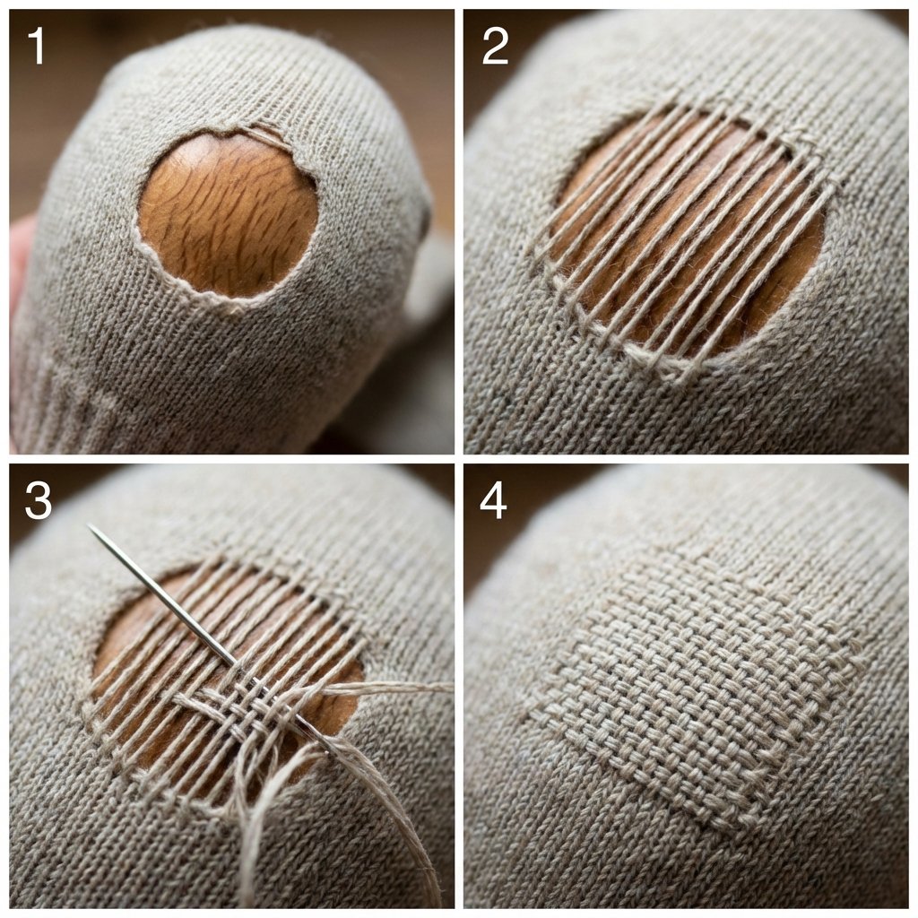 Alright, it’s go-time. No more talk. This is the method. Read it once, then grab that sad, holy sock and let’s bring it back to life. We’re essentially going to weave a new patch of fabric right over the hole. It’s simpler than it sounds. You’ve got this.