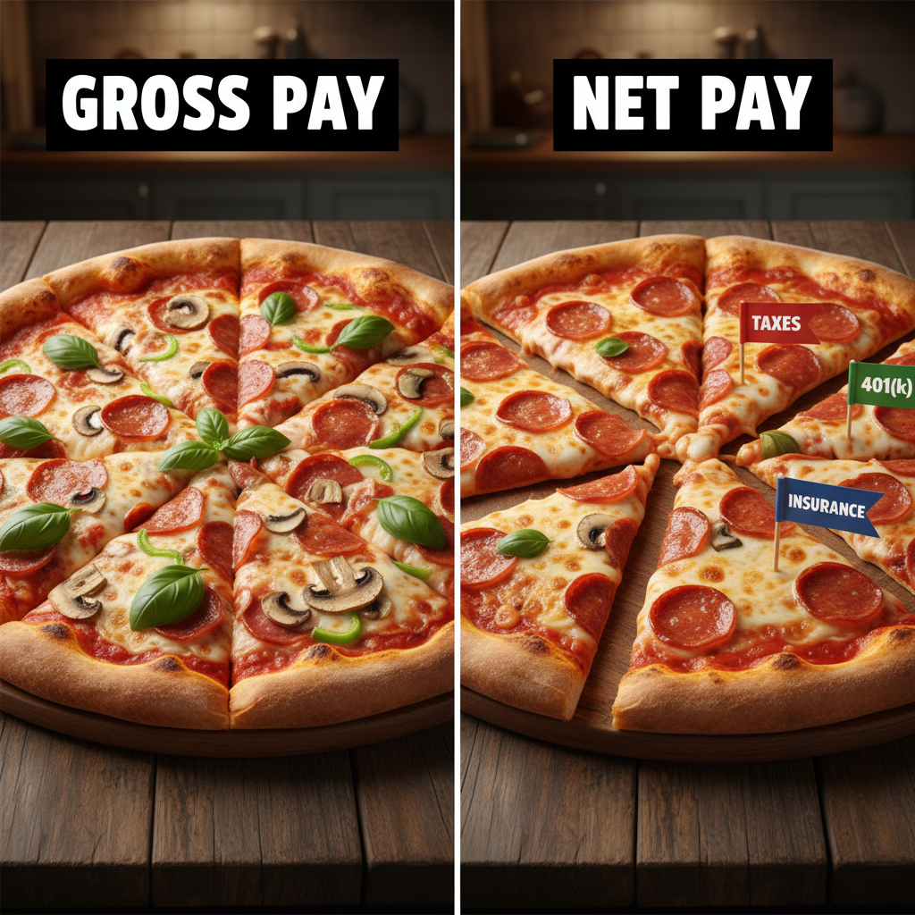 What you actually get is your Net Pay, often called ‘take-home pay.’ This is the amount left over after all deductions have been subtracted. Think of your gross pay as a whole pizza. You’re hungry, you’re ready to eat the whole thing. But then the government swoops in for a slice, your health insurance company takes a slice, and your future self (via your 401(k)) grabs a slice for later. What’s left on the plate is your net pay. The difference between the whole pizza and what you get to eat can be shocking, but understanding who’s taking which slices is the first step to taking control of your financial kitchen.